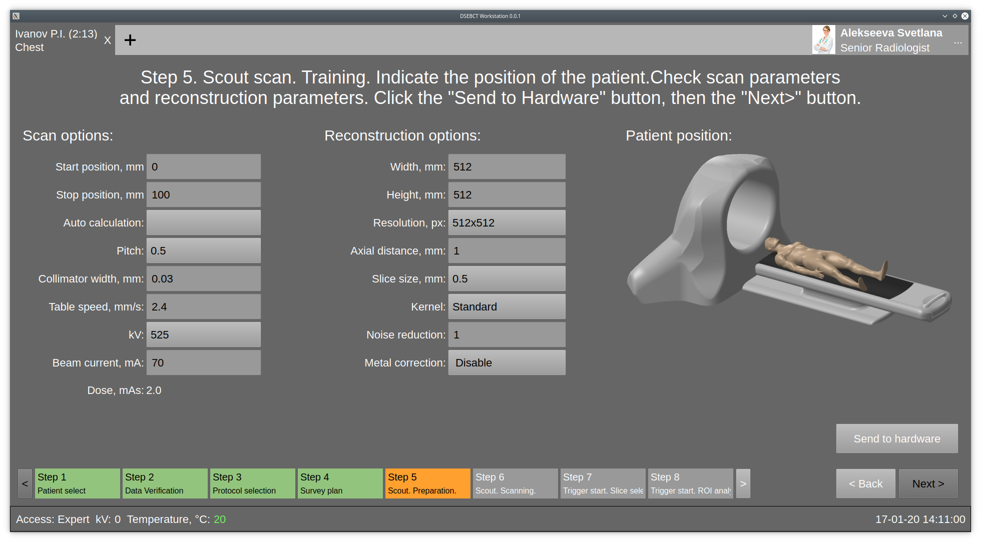 Our team developed for Imatrex (U.S. based company):The software architecture of the system includes a desktop client, an Android client, Web backend & Web client interaction service.User interfaces & flows for both user clients;Data transfer scheme between parts of the system;The data protocol of the interaction with the server part;Desktop & mobile clients allow the operator to make computer tomography scans.