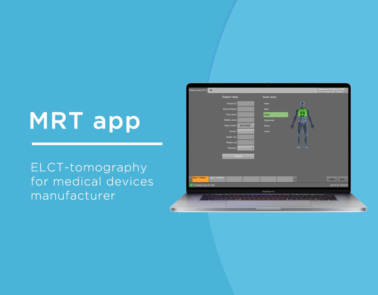 Development of a software client with a user interface for managing an MRT device.